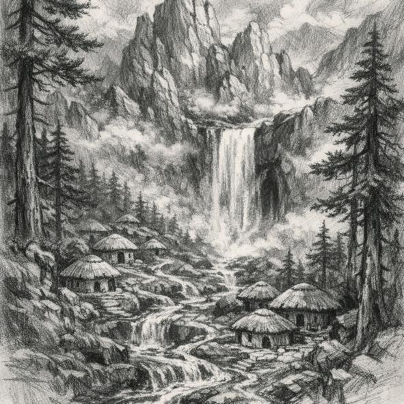 Домов в деревне было не больше дюжины. Сложенные из грубого камня и дерева, они гармонично вписывались в ландшафт, будто проросшие из самой земли. Каждый камень, каждое бревно хранили в себе память поколений, шепотом пересказывая истории о мудрости предков и нерушимости традиций. «Мы — часть скалы, часть реки, часть этого леса», — говорили старики, и молодые внимали каждому их слову, впитывая вековую мудрость. В центре дома обязательно находился очаг. Здесь готовили пищу, согревались в холодные месяцы и обязательно собирались всем родом для общения. Вечера, как правило, завершались чтением вслух старинных текстов, возглавляла чтение обыкновенно самая старшая в семье, которую с уважением называли абыстай[3].