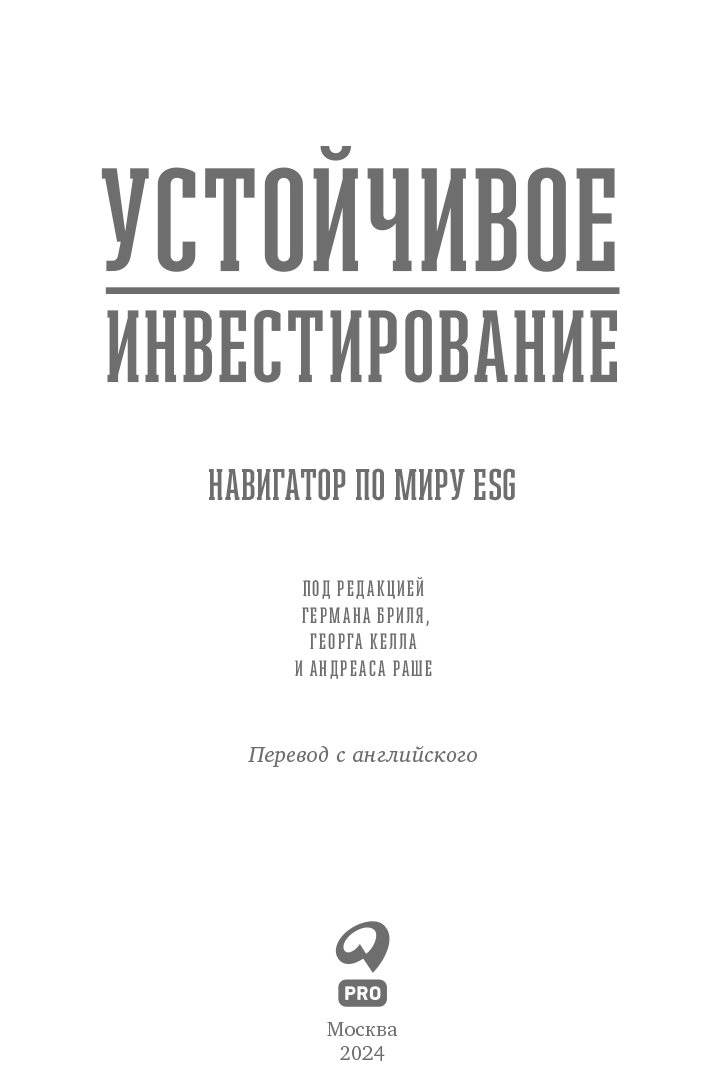 Это увлекательная книга, содержащая массу знаний для всех, кто интересуется темой: она будет полезна и опытному инвестору, который хочет лучше понять область устойчивого инвестирования, и любознательному бизнес-лидеру, желающему больше узнать о том, что это такое и как это можно использовать.