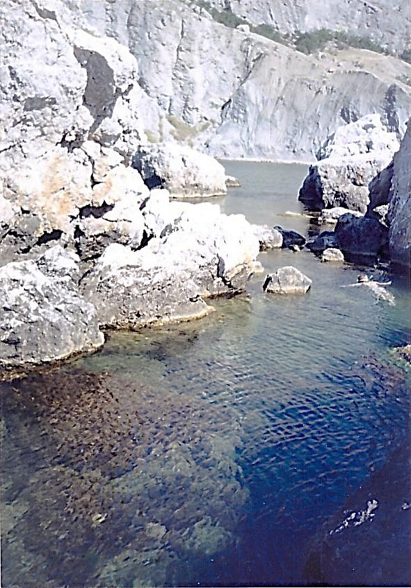 В 11.00 на катере «Шторм» поплыли в Голубую бухту (25грн. и 15грн). Плывем мимо крепости, мимо скал Уютного, горы Сокол, Дельфина, Черепахи и других скал. Проплыли место, где в море прыгал когда-то Ихтиандр, проплыли грот Воронцова и мимо Царской тропы, которая начинается от Нового Света.