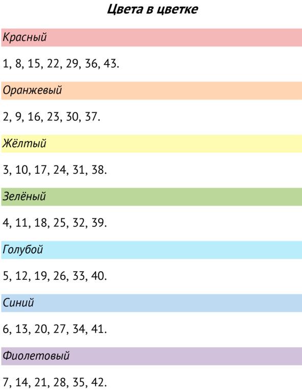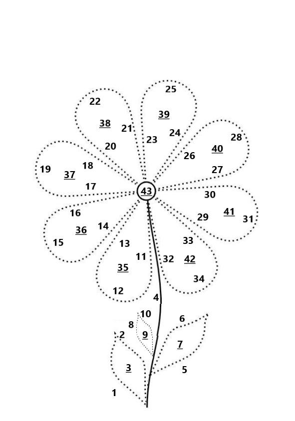 После чего посмотрите на образец рисунка. На нём найдите ту часть цветка, которая совпадает с номером данного вопроса.