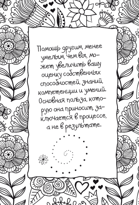 Оказывая внимание другим, вы можете помочь себе вырваться из состояния замкнутости, вызванного сосредоточенностью на семье, карьере, финансовых проблемах или стрессах. Помощь другим имеет свойство улучшать настроение, углублять оптимизм и питать нас чувством искренней благодарности. Помощь другим, менее умелым, чем вы, может увеличить вашу оценку собственных способностей, знаний, компетенции и умений. Основная польза, которую она приносит, заключается в процессе, а не в результате. То есть я хочу сказать, что вознаграждение для того, кому вы помогаете, и вознаграждение для вас самих проявляется главным образом в повседневном взаимодействии в процессе оказания помощи.
