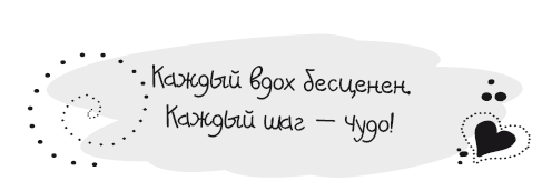 Пелена равнодушия упала с моих глаз, и неожиданно меня переполнило чувство благодарности за дар жизни. Каждый вдох бесценен. Каждый шаг – чудо! Стрессы, которые мучили меня, показались мудро подстроенными испытаниями, которые призывали меня строить свою жизнь более обдуманно. Покой опустился на меня пуховым одеялом, и я почувствовала, как меня обнимают невидимые руки.