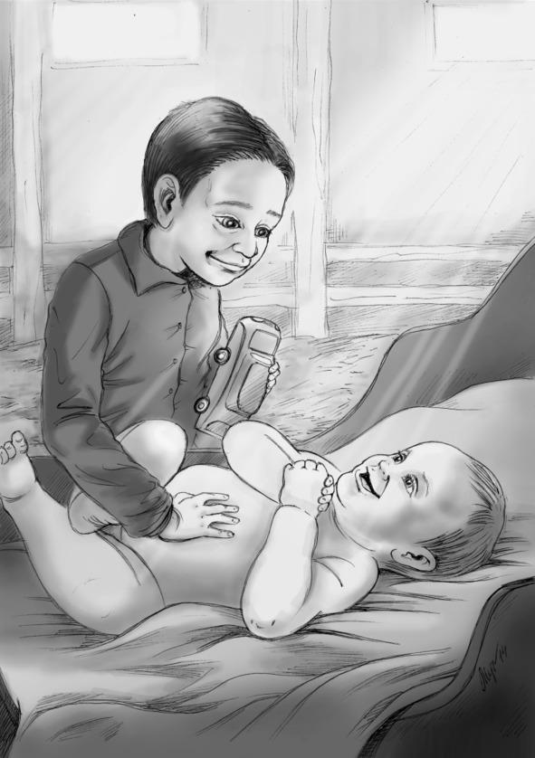 Дэн уже успокоился и притих, прижимая машинку к груди. Он внимательно следил, как играет его названная сестра.