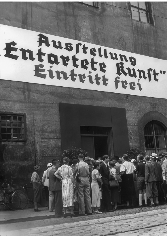 19 июля 1937 года Археологический институт Мюнхена открыл художественную выставку в аркадах Хофгартена [12]. Это 650 произведений более ста художников, конфискованные из 32 немецких музеев. В первый же день туда устремились 30 000 посетителей. В декабре выставка стала передвижной и начала свое турне по двенадцати городам. В итоге ее посетили два миллиона человек, желавшие посмотреть на то, что национал-социалистическая пропаганда провозгласила «дегенеративным искусством». В своей вступительной речи профессор Адольф Циглер, президент Имперской палаты изобразительных искусств, громогласно заявил: «Вы видите вокруг нас порождение безумия, сумасшествие, наглость, неумелость и вырождение. У всех это зрелище вызывает шок и отвращение».