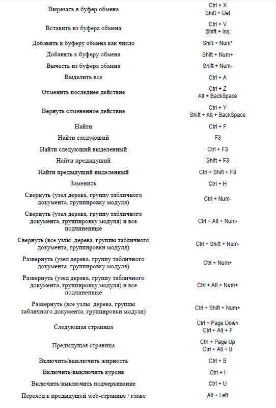 Таблица 1.1. «Горячие клавиши» общего назначения