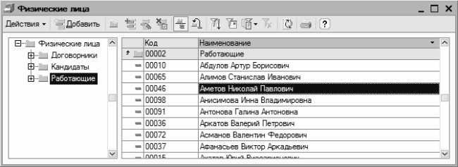 Справочник физических лиц — самый главный справочник, используемый в конфигурации «Управление персоналом». Это неудивительно: ведь персонал любого предприятия — это его сотрудники, каждый из которых является физическим лицом. В справочнике физических лиц хранится самая подробная информация о каждом сотруднике предприятия.