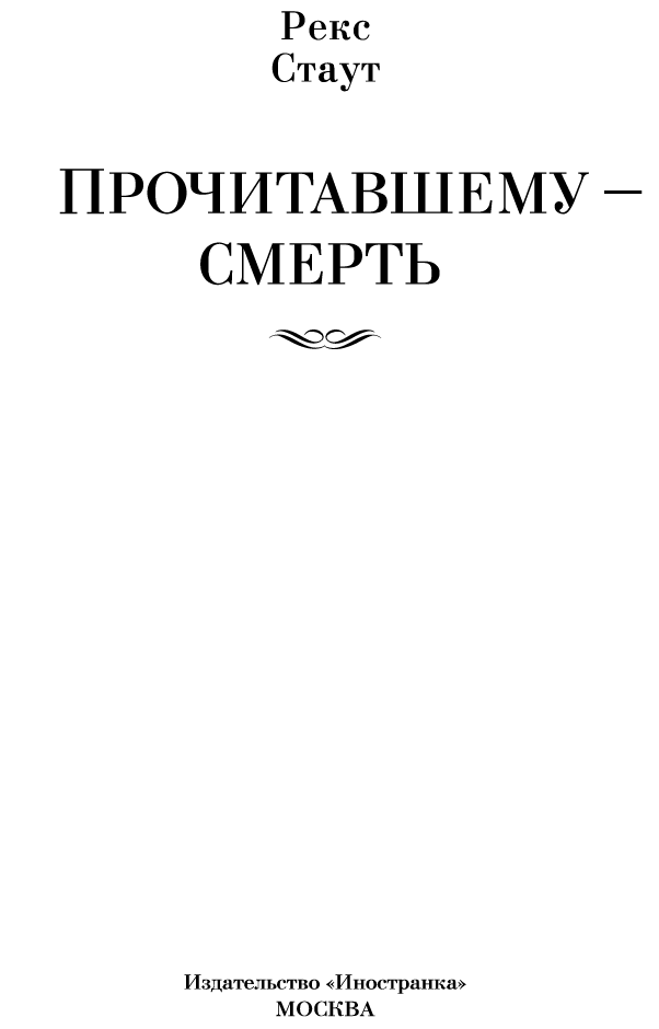 — Нет. Мы знаем только, что она написала родителям про незнакомца, который представился по телефону Бэйрдом Арчером и рассказал про свою рукопись, направленную в издательство, прочитанную мисс Уэллман и возвращенную по почте Бэйрду Арчеру, до востребования. — Вулф покачал головой. — Нет, Арчи, быстрой победы здесь ожидать не приходится. Боюсь, пока мы доберемся до конца, мистер Уэллман и впрямь пойдет по миру, если, конечно, не откажется от помыслов о мести. Пусть полиция сделает все, что в ее силах.