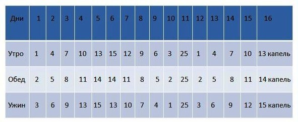 – Для приготовления лекарства нужно 200 г. чеснока прокрутить 2 раза на мясорубке и к этой кашице добавить 100 г. 96% спирта. Смесь хранят в темной бутылочке в прохладном месте 3 недели, затем фильтруют. Для хранения ставят в прохладное место еще на 3 недели, затем фильтруют и 3 дня хранят при тех же условиях. Затем к настойке добавляют 50 г. меда, размешивают и добавляют 10 г. спиртовой вытяжки прополиса, все перемешивают и употребляют за полчаса до еды каплями, разбавляя в ложке с водой по схеме: