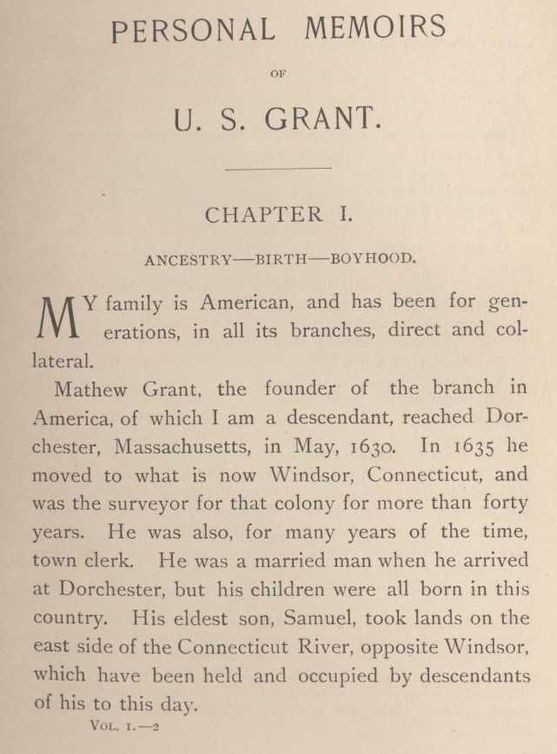 Title: The Memoirs of General Ulysses S. Grant, Part 1.