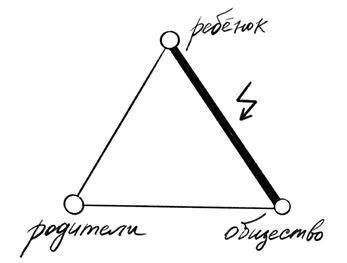 Следующий конфликт находится на грани треугольника между родителями и обществом.