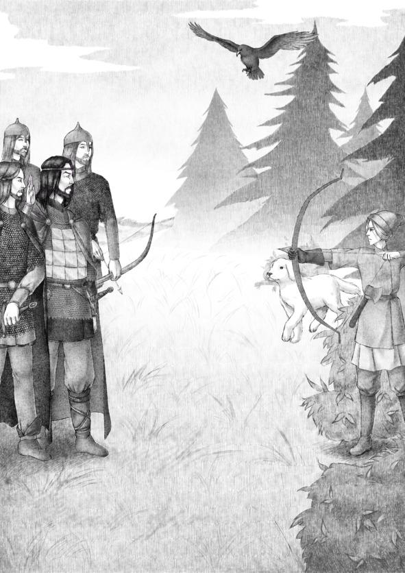 Выйдя из леса, приостановилась: встрепенулся и улетел сокол, сидевший у меня на руке, насторожился Белый. Сразу проверила топор на поясе и вытащила из налуча охотничий лук. Сердце лихорадочно застучало, и мне пришлось сделать над собой усилие, чтобы хотя бы замедлить его бешеную скачку.