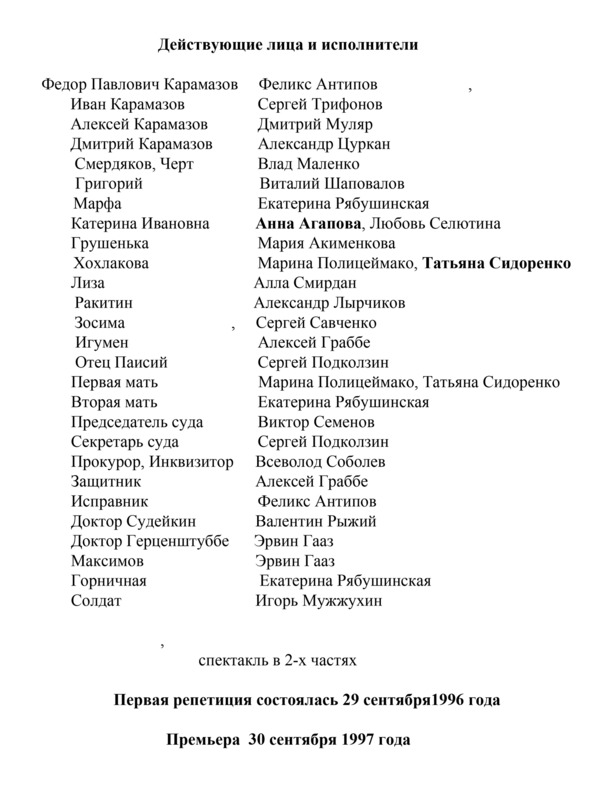 ФОТОАЛЬБОМ. ЧАСТЬ СЕДЬМАЯ. БРАТЬЯ КАРАМАЗОВЫ