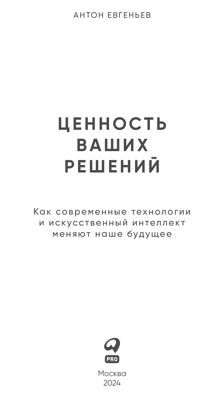 автордың кітабын онлайн тегін оқу Ценность ваших решений. Как современные технологии и искусственный интеллект меняют наше будущее