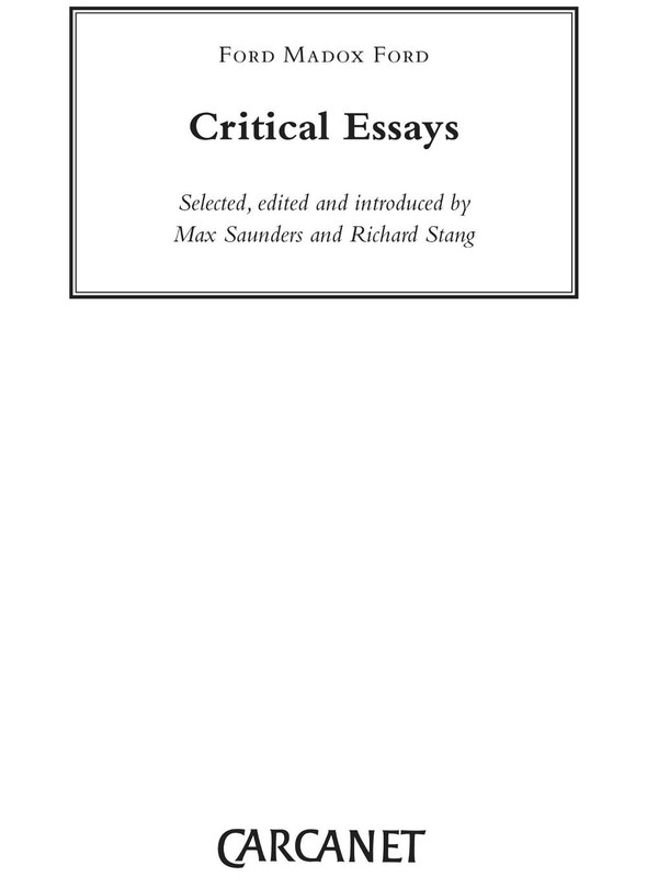 Perhaps these essays will send the reader to Ford’s many books of criticism, such as Thus to Revisit, Portraits from Life, Henry James, Joseph Conrad, The English Novel, and The March of Literature; and to the essays in collections such as Sondra Stang’s A Ford Madox Ford Reader, Frank MacShane’s Critical Writings of Ford Madox Ford, Brita Lindberg-Seyested’s Pound/Ford, Martin Stannard’s Norton Critical Edition of The Good Soldier. Work now in print was not included in the present volume since it seemed wasteful to use the limited space available to us reprinting material easily accessible.
