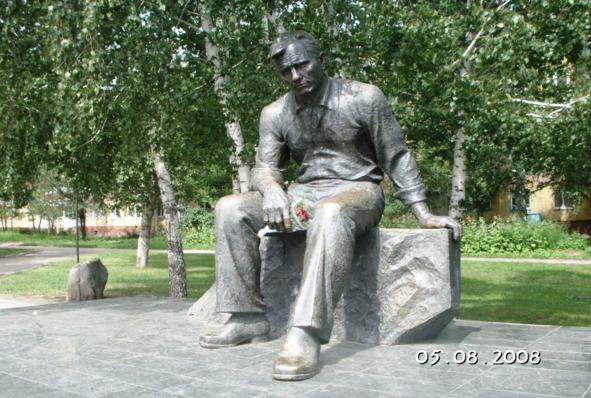 Памятник В. М. Шукшину у родного дома матери в Сростках