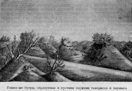В мсем дневнике записап на этом переходе следующий характерный случай. Во время пути на сильном зное, около полудня, ко мне на руку села большая мясная муха и не хотела улетать, несмотря на то, что я сгонял ее несколько раз. Я плюнул на руку, муха принялась с жадностью пить слюну, потом улетела. Видно, и насекомым подчас жутко приходится в безводной пустыне.