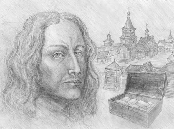 Монах-служка прислушался. Тихо… Отмаялся немец! Сейчас, скорее, пока никто не пришёл! Опустился на колени возле печи, пошарил в подпечье за дровами… Вот он, ларчик-то! Заперт. Ключик небось у немца… Найти бы! Оглянулся на умершего. Нет, страшно! Не до ключа, не ровён час, придёт кто, увидит, отнимет! Оглянулся ещё раз: ему показалось, что покойник следит за ним. Перекрестился. Чур, чур меня! Накинул на плечи тулуп, и, прикрывая ларец полой, выскользнул из горницы…