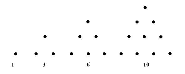Пифагорейцы исследовали фигурные числа, в частности, треугольные (их можно изобразить в виде треугольника).