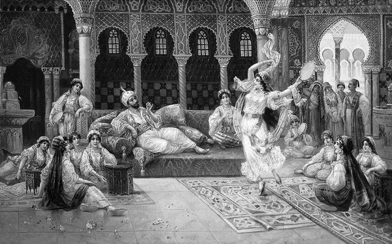 Что же происходит с невольницей, подаренной султану? Она попадает в запретное место – так, собственно, слово «гарем» и переводится. Дам в нем уйма, и далеко не все для секса, многие просто по хозяйству. Они носили титул хазинедар – хранительниц, им присваивали ранги от первого до пятого, и работали они не меньше наших женщин. Наши мужчины поваров не нанимают, им жены борщ варят, а султану что, так нельзя? Вот и у султана кахведжи-уста кофе варила, чашнагир-уста пробовала всю приготовленную еду, чтоб ее для любимого султана не приправили какой-нибудь отравой, а килерджи-уста следила за сохранностью запасов в султанском винном погребе (да-да, у султана-мусульманина, он же еще и халиф, верховный владыка правоверных, – кто же ему пить запретит?). Совершенно так же и с прочими хозяйственными обязанностями: белье стирает чамашир-уста, в бане, натопленной кюлханджи-уста, трет султану спинку ибриктар-уста, ставит заболевшим наложницам тогдашние горчичники и выдает им тогдашний аспирин хасталар-уста… В общем, все при деле, как в «Кавказской пленнице»: «Зульфия мой халат гладит у доски, шьет Гюли, а Фатьма штопает носки».