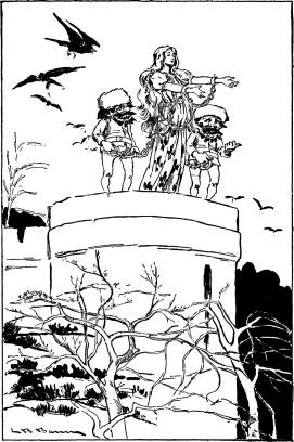 Again the croaking creature stood and gloated over his victim, then left him to the silence of another long day in the dungeon. The third day he opened the door and hopped in, rubbing his webbed hands together with fiendish pleasure, saying, "You are to have no food and drink to-night, for the Witch has thought of a far more horrible punishment for you. In the morning I shall surely come again, and then--beware!"