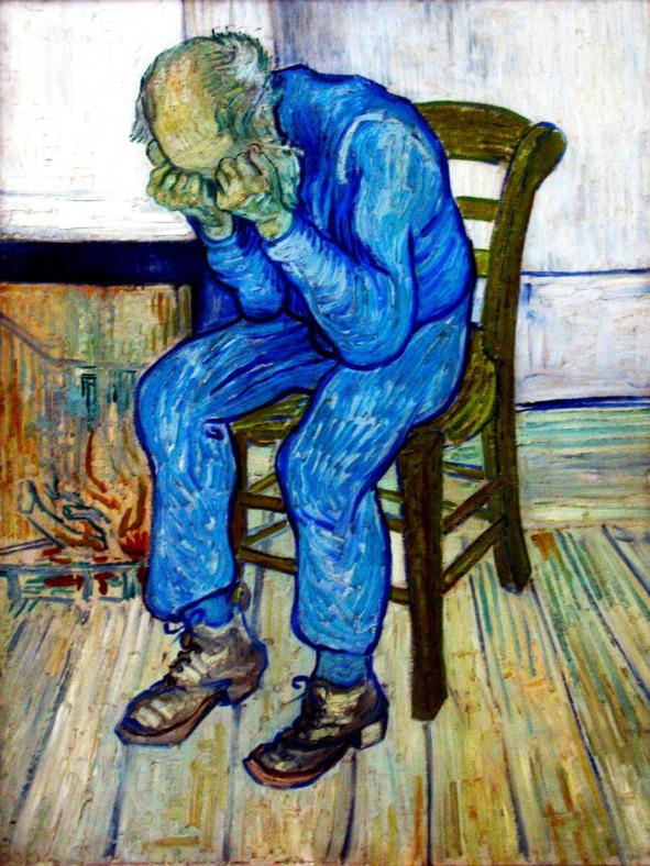 Вечерами отец заходит в мамину комнату, садится на диван, склоняет голову, обхватывает её руками, и сидит так по два часа. Зрелище — удручающее. Прямо как на картине Ван Гога «На пороге вечности»:
