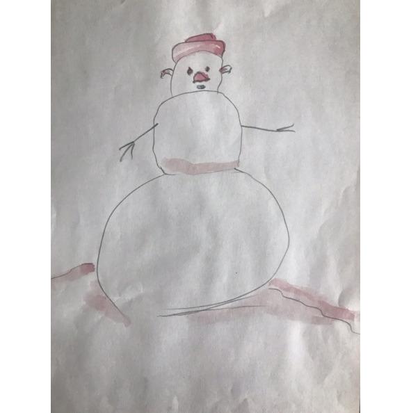 Он ждал, определённо — ждал. Идём в его комнату, смотрим альбом. Добавились три рисунка карандашом, слабенькие, непрорисованные — снеговик, телёнок, и — не то заяц, не то кошка.