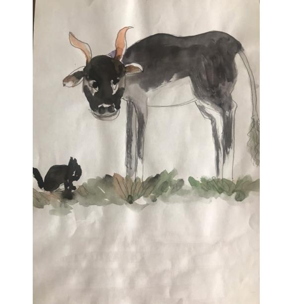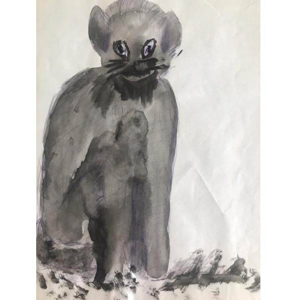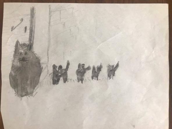 В следующее воскресное утро я опять у родителей. Папа показал мне рисунки и про один, где большая кошка с котятами, пояснил: «Это у меня на даче летом такая картина была. Я вышел из гаража, смотрю — у двери кошка сидит. А потом присмотрелся, а там, рядом с ней четыре котёнка! И так смотрят на меня!»