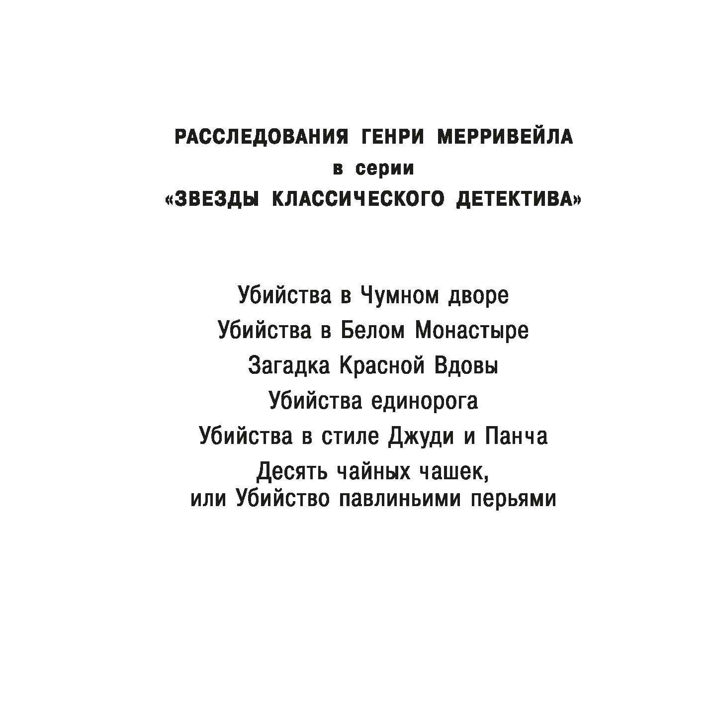 В романе «Десять чайных чашек, или Убийство павлиньими перьями» сэру Генри Мерривейлу, одному из самых обаятельных и эксцентричных сыщиков в детективной литературе, вновь предстоит расследовать «невозможное преступление» — убийство, совершенное двумя выстрелами в упор на тихой фешенебельной улочке Лондона, в пустом доме, где не было никого, кроме жертвы…