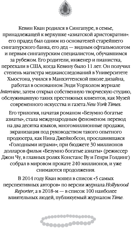 Безумно богатые азиаты : роман / Кевин Кван; пер. с англ. Н. Власовой. — М. : Иностранка, Азбука-Аттикус, 2019.