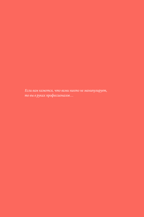 Я искренне люблю тему манипуляций. Я живу этой темой последние несколько лет. И чем больше углубляюсь в нее, тем больше понимаю, что это безграничная сфера. Ею можно заниматься всю жизнь и все время находить что-то новое. Я люблю тему манипуляций, но, к сожалению, мне не нравятся книги, посвященные этой теме. В них много моралистики, патетики и абстракции, но мало конкретики и практики. А главное, что отсутствует напрочь, — система.