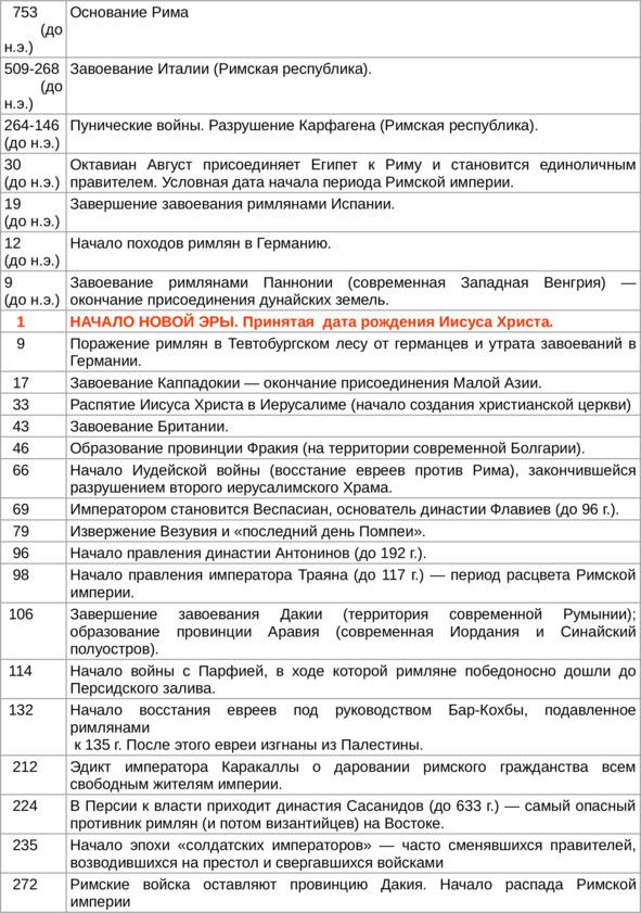 - КРАТКАЯ ХРОНОЛОГИЯ РИМСКОЙ ИМПЕРИИ