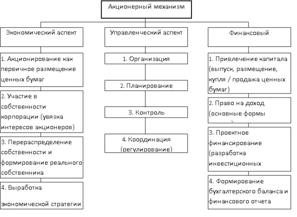 Процесс функционирования корпорации реализуется через акционерный механизм (рис.1.1).