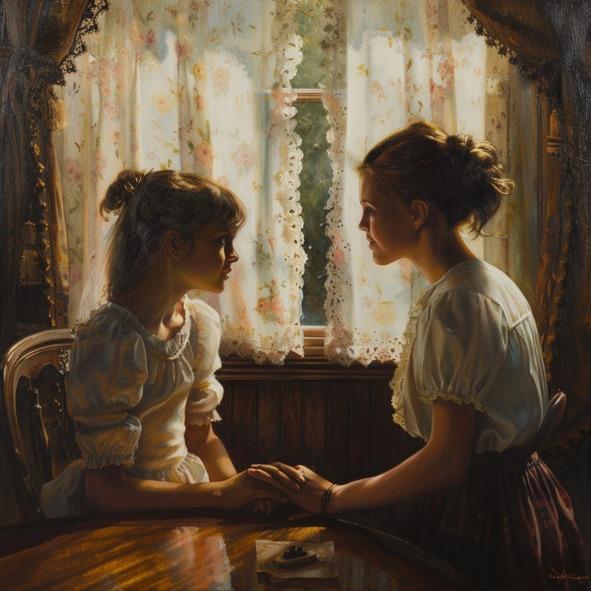 Мама обняла своих детей за плечи, прижала к себе и сказала: «Вы мое самое большое счастье. Нет для меня ничего дороже вас двоих». Аленка подняла глаза и увидела радостное, нежное лицо матери.