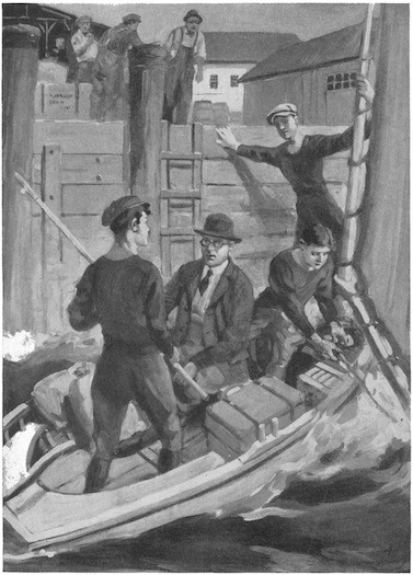 “I don’t want a man,” was the answer. “I want a likely young fellow, someone about your age and general cut of jib—that’s the right seafaring expression, isn’t it? I’ve got an adventure on hand, and I want company. I wouldn’t mind two, or even three, young fellows, if they were the right kind.”