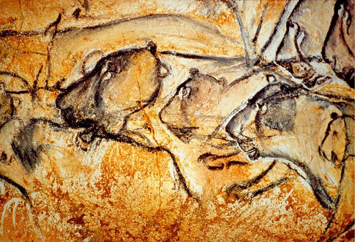 Столкнувшись с первыми проявлениями художественного гения, посетитель пещеры Шове укрепляется в мнении, что невозможно представить себе человека без искусства, как нельзя вообразить себе искусство без эволюции. В пещере Ласко представлены животные, которые были объектом охоты или позже одомашнены; в пещере Шове – те, кого боялись (промежуточное положение занимает мамонт, вызывавший страх, но и становившийся добычей) и кому в наскальной живописи выражали почтение. Это не просто часть обряда; тут приходится говорить об искусстве, и о таком искусстве, которое на заре человеческой цивилизации уже демонстрирует исключительное мастерство. В изображениях львов, например, присутствует иллюзия объема (пусть еще инстинктивная и технически несовершенная) и перспектива, открывающая пространство, в котором перемещаются эти хищники. Фигуры не наложены друг на друга и не пересекаются; львы – тяжелые и мощные, грозные и великолепные – выступают вместе к общей цели. Смягченные цвета и реалистичные тени усиливают правдоподобность образов, которые, вероятно, пугали своих авторов, живших с природой нераздельно. Ведь художник не ограничился виртуозным подражанием натуре; изображая движение львов, он заботился скорее об ощущении жизни, чем о натуралистических подробностях. А, скажем, в фигуре носорога, нарисованной древесным углем, поражает сама линия, которая с удивительной простотой выражает не просто силу колосса, но угрозу, которую он представляет для своих возможных противников.
