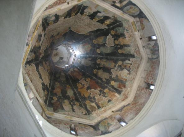 Интерьер церкви был сделан по указанию и даже по собственноручным рисункам Грозного, очень увлекавшегося новой западной философией, с которой его познакомил Сергий Радонежский. Её внешнее и внутреннее убранство и особенно роспись стен должно было оказывать на современников неизгладимое впечатление: доминирующими цветами фресок были… черный, различные оттенки красного и немного серебра и золота. Порталы небольшого помещения затворялись изнутри двойными тяжелыми дверями, которые закладывались снаружи (!) огромными, размером с бревно, засовами, изолируя молящегося царя от внешнего мира.