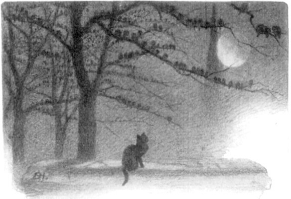 Is he songless, sooty, uninteresting, vulgar? Not if you live on a roof. He may be all of this, a pest even, in the country. But upon my roof, for weeks at a stretch, his is the only bird voice I hear. Throughout the spring, and far into the summer, I watch the domestic affairs in the eaves-trough. During the winter, at nightfall, I see little bands and flurries of birds scudding over and dropping behind the high buildings to the east. They are sparrows on the way to their roost in the elms of an old mid-city burial-ground.