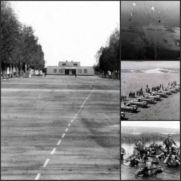 см. ФОТО: 1.Тот самый плац учебного центра. По сторонам от него казармы. Прямо в конце, столовая.2. Вододром. Вид сверху. 3.Полигон. 4.Подготовка личного состава.