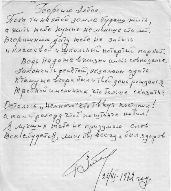 Позже он несколько раз говорил мне, что переживал, что я не поступил в его заведение. А в 1982 в мае после Спартакиады Ленинграда подошел и поздравил меня с победой.