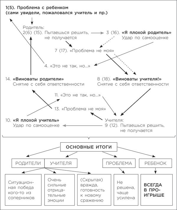 Учителя и родители – люди (в большинстве своем) образованные, имеющие по большому счету общие цели, вступают в бой друг с другом, порой не стесняясь в выборе средств. Если разобраться, то окажется, что преимущественно ими движет желание, которое не имеет отношения к самой проблеме, – желание оказаться правым! Потому что именно эта правота дает возможность уберечь свою самооценку. Самое печальное, что в этой борьбе, декларируя заботу о ребенке, обе стороны думают только о собственной победе, собственном статусе. И кто бы ни победил – родитель или учитель, – в проигрыше всегда оказывается тот, ради блага которого эта борьба, собственно, и разворачивается, – сам ребенок.