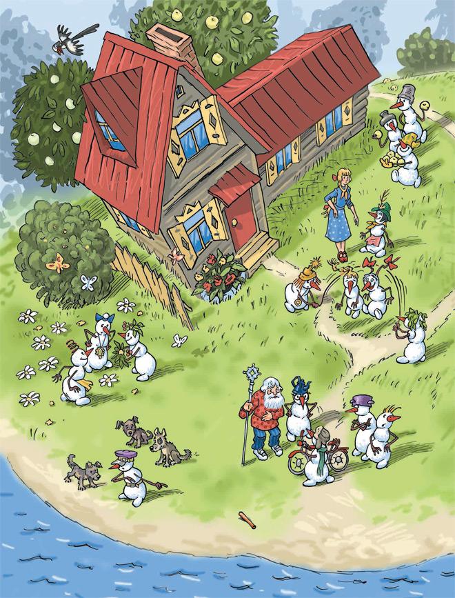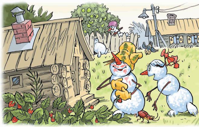 Лето! Прекрасное волшебное лето! Мы-то к нему привыкли, а снеговики и снеговички просто одурели от красок, звуков и запахов. Побросав свои рюкзаки, помощники Деда Мороза как сумасшедшие носились по всей деревне и ловили жуков.
