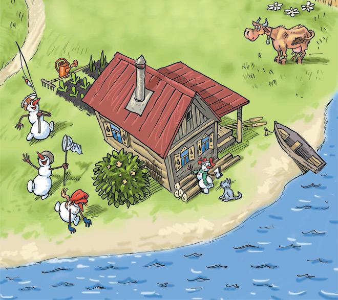Снеговики, конечно, видели лето на картинках, и в интернете, и в кино. Но одно дело — в кино, а другое — на самом деле. Всё было сочного изумрудного цвета, как будто землю помазали зелёнкой или на всех снеговиков чья-то невидимая рука надела цветные очки.