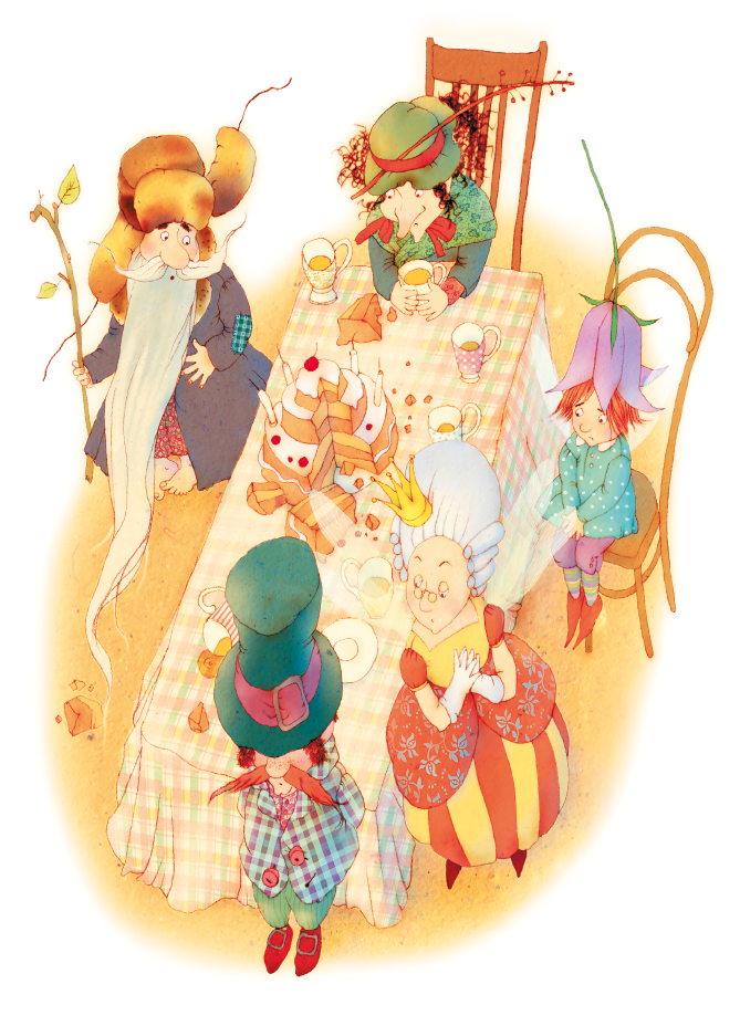 Гном Пимпом очень обрадовался красивому и вкусному подарку. У него как раз собрались гости – Пчелиная Царица и Лесовик со своей тётушкой Кикиморой. Пимпом заварил чай с чабрецом и мятой, разрезал пирог и стал угощать друзей. Но никто не смог проглотить ни кусочка – у пирога был ужасный вкус и запах! Пимпом нахмурил брови и сердито сказал Чирку: