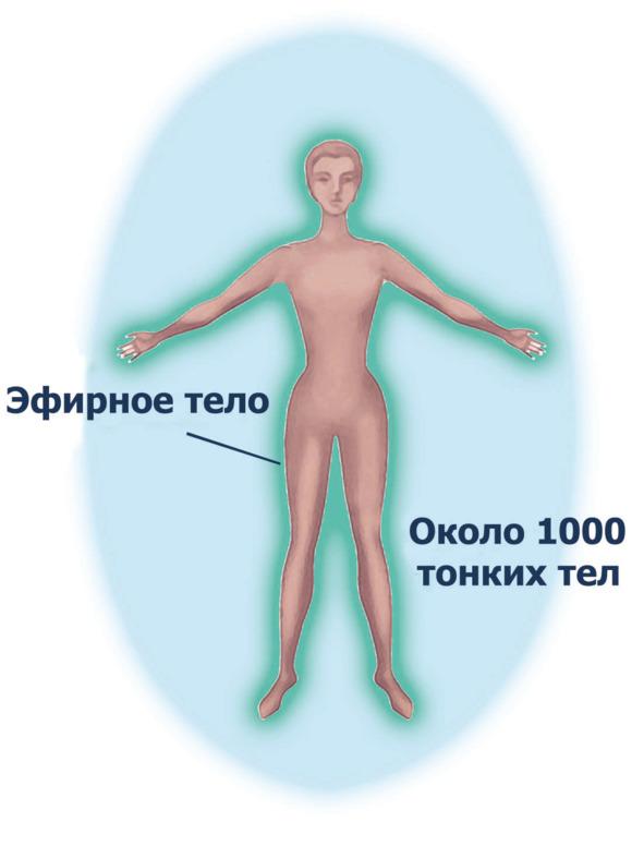 Тонкие тела представляют собой яйцеобразное энергетическое образование вокруг человека ориентировочного размера в размах его рук. Верхняя точка этого энергетического яйца находится примерно в тридцати-сорока сантиметрах выше макушки головы и нижняя точка около пятидесяти сантиметров ниже его стоп. Сохраняя в себе все наработки человека на Земле, они являются аккумуляторами тех энергий и их информатики, которые образовались в результате его жизнедеятельности во всех его воплощениях. Пользуясь случаем, можно сказать, что одним из свойств непроявленных энергетических планов является способность нахождения в одной точке пространства множества энергий, что полностью несовместимо с законами Земли. Применительно к тонким телам можно сказать, что, несмотря на свои реальные, в ряде случаев ощущаемые руками физические очертания, энергетические накопления в них могут быть огромны, и полностью не соответствовать нашим земным представлениям об их насыщении. Поясняя вышесказанное, можно отметить, что, если изъять из них даже часть энергий, то они по своим физическим размерам в мерностях Земли будут значительно превышать реальные размеры самих тонких тел. Как и любая часть энергетической структуры, тонкие тела в зависимости от кармических и родовых задач имеют своими составными частями родовые и кармические энергии, обеспечивающие физическому телу именно те настройки, которые отражают в теле результат кармической необходимости, например такой, как конституция тела, характер, хронические заболевания и прочие земные атрибуты.