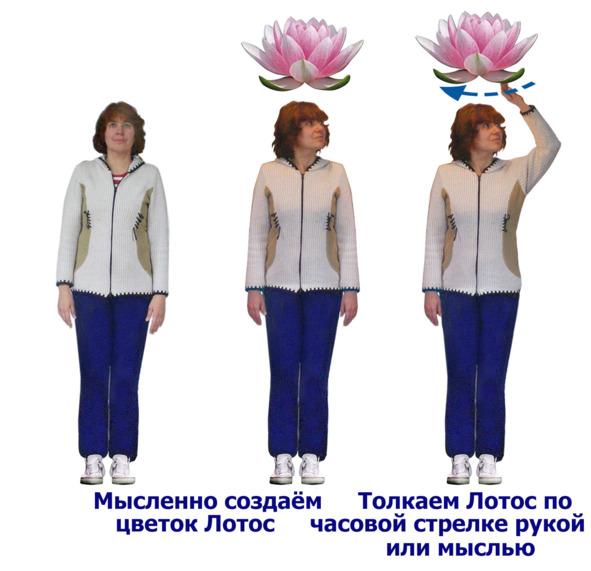 Далее, взяв мысленно созданный цветок за один из листьев, левой рукой плавно, но достаточно быстро толкаем весь цветок по часовой стрелке, в результате чего в нашем сознании он должен начать мысленно вращаться именно по часовой стрелке, то есть, слева направо через переднюю часть туловища человека. В этот момент вы мысленно должны поддержать это круговое движение цветка и постепенно ускорить его движение, по возможности до 30—40 оборотов в минуту. Это условная скорость, потому что для каждого человека она своя и определяется кармическими и родовыми настройками. Каждая чакра вашей структуры должна вращаться только по часовой стрелке. Если она стоит или вращается в другую сторону, то необходимо усилием мысли восстановить правильное направление движения. Именно поэтому для людей, которые не чувствуют энергий, но решат воспользоваться данной практикой, желательно восстановление чакр утром и вечером, тем более что данная процедура после даже небольшой практики становится быстрой и занимает ориентировочно десять — пятнадцать минут на всю чакровую структуру.