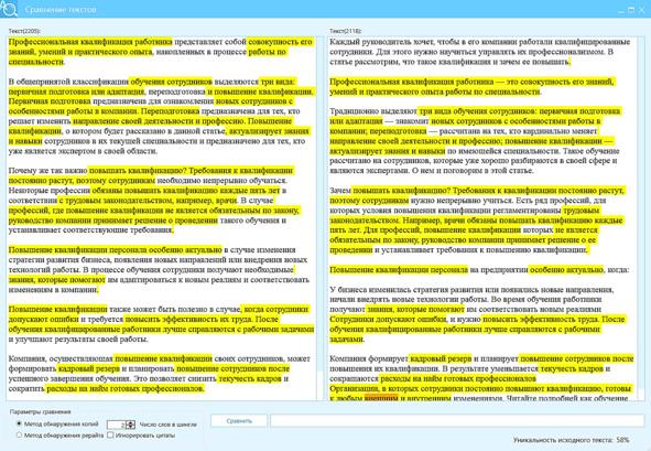 Бесплатное программное обеспечение AntiPlagiarism.NET позволяет сверять тексты на отличие — локально.
