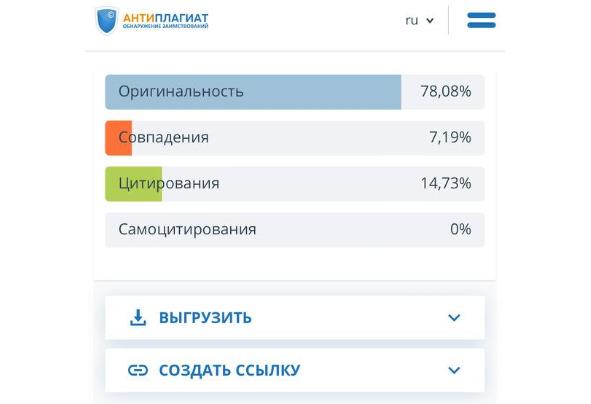 Рисунок 1 — Результат проверки текста в Антиплагиат, версия ВУЗ