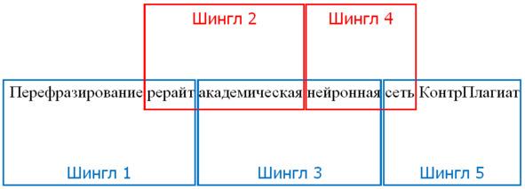 Разбиение текста на фрагменты — шинглы, конец каждого фрагмента является началом предыдущего, рис. 4.
