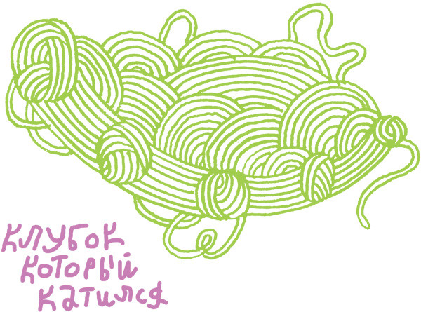 «Ну и пусть я гибну!» — упрямо размышлял Клубок-Шерстяных-Зелёных-Ниток, постепенно превращаясь в длииииинную такую ниточку соответствующего (зелёного) цвета. Ниточка терялась в зелёной траве — и постепенно становилось понятно, что наш клубок решил погибнуть навсегда, потому как отыскать зелёную ниточку в зелёной траве никому не под силу!