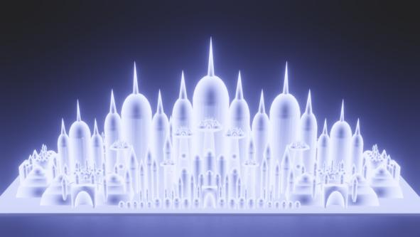 Этот замок просто завораживает, над ним светит экран — внутренняя часть той огромной светящейся сферы. И замок обязан быть таким огромным, ибо благодаря своей массе, электрическому потенциалу, и ряду других технологий он держится и сам создаёт небывалое гравитационное поле!
